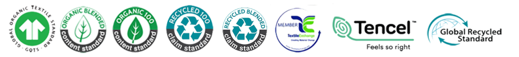 As of 2025, 95% of the fibers we use come from certified organic or low impact sustainable sources. All our production partners from fabric mills to printing and embroidery services are certified by recognized international standards.